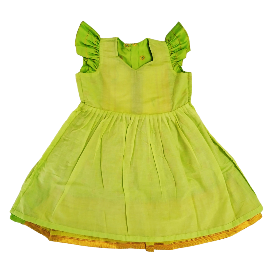 Girl’s Morpankhi Color Cotton Silk Frock with Golden Border and Nods